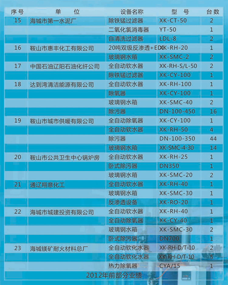水處理設(shè)備系列|鞍山市益水環(huán)保設(shè)備有限公司銷售業(yè)績(jī)