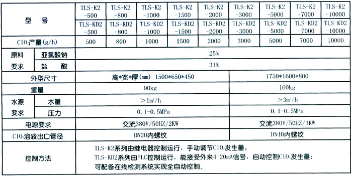 型號及性能參數表