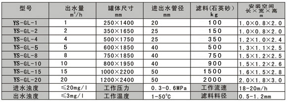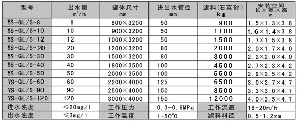 YS-GL/S系列機械過濾器技術參數表(雙倉):